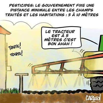 Même avec du matériel de précision de Haute technologie qui enferme un peu plus les agriculteurs dans un système basé sur la chimie, les produits de traitement se propagent dans l’air, au sol dans l’eau, dans le potager des riverains, sur leurs mobiliers de jardin… . Dans l’immédiat, nous demandons une transparence totale sur la liste des produits répandus, une information sur les horaires d’épandage et les risques sanitaires encourus, les délais de ré-entrées dans les parcelles. Nous demandons aussi un dialogue urgent d’égal à égal afin de mettre en place un plan progressif de sortie des pesticides avec, par exemple, la mise en place d’expérimentations soutenues par les pouvoirs publics de culture sans chimie dans la bande des 150 m des habitations. Ces revendications n’ont toujours pas été retenues, ni entendues.